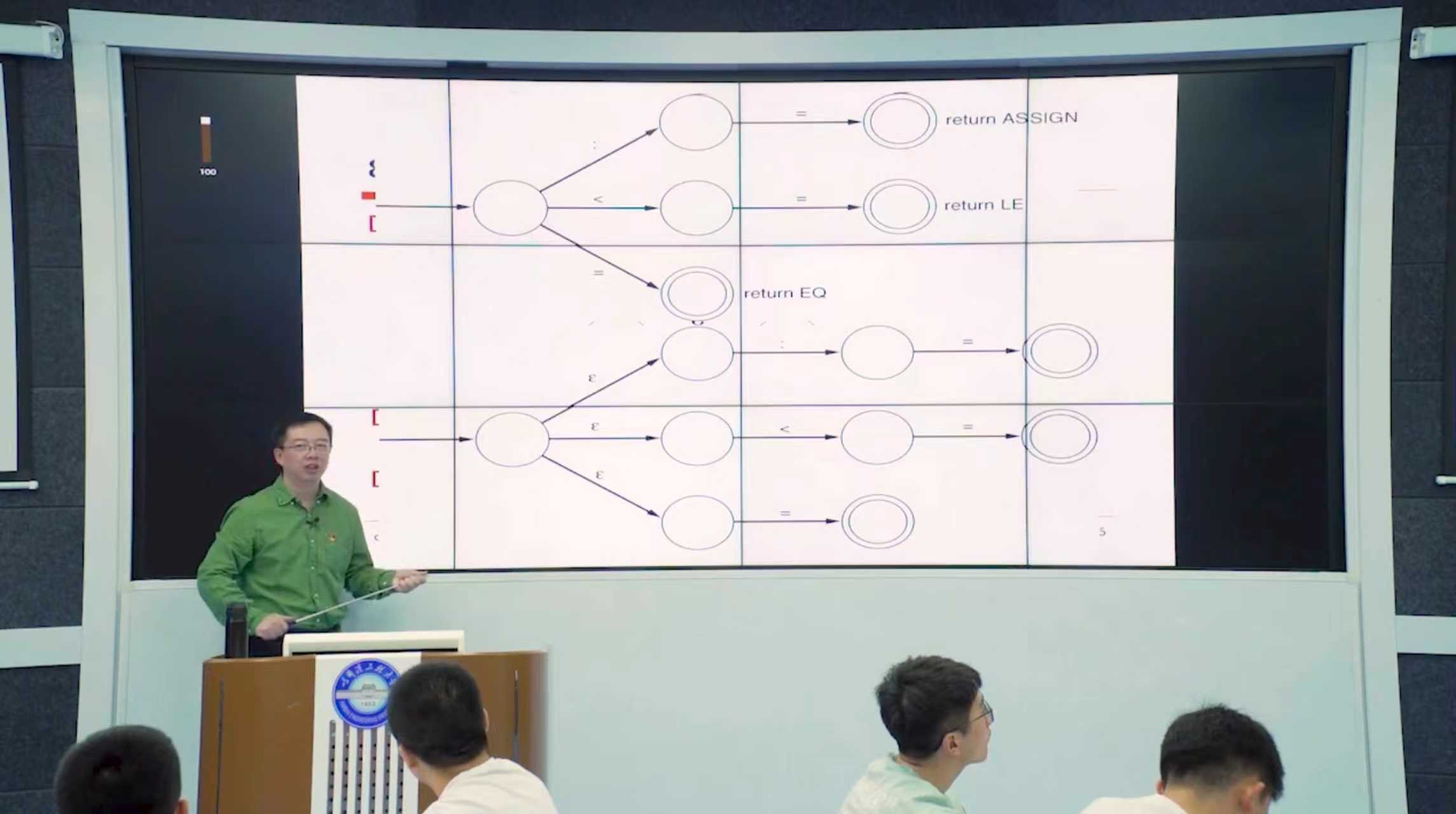 以智能船舶实时编译器为贯穿性综合实践项目,完整覆盖从词法分析(船载传感器指令解析)到代码生成(RISC-V架构适配)的全流程技术链。融入自然语言处理等跨学科前沿技术,通过国产化案例实践,培养学生系统思维和创新能力。这种教学模式突破了传统课程的知识边界,使学生能够将编译原理与人工智能、芯片设计等领域知识进行有机融合,形成综合性的技术能力体系。